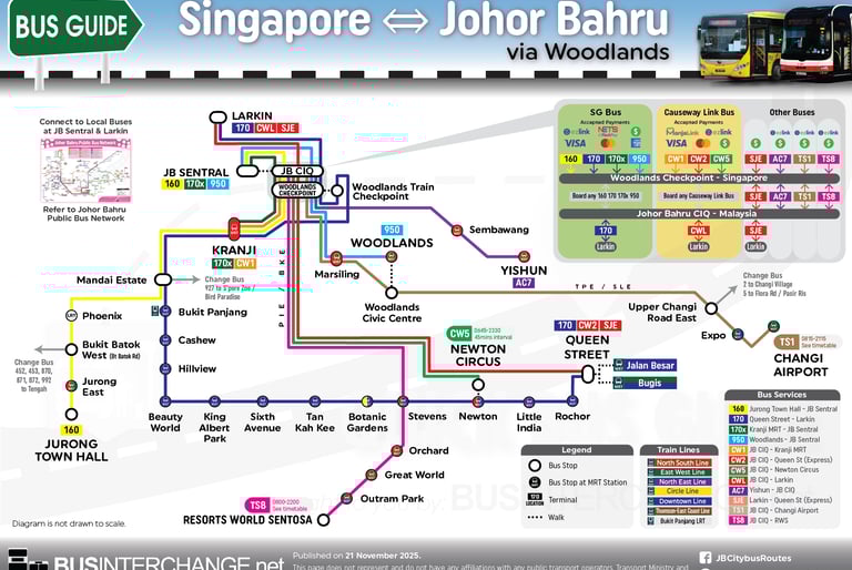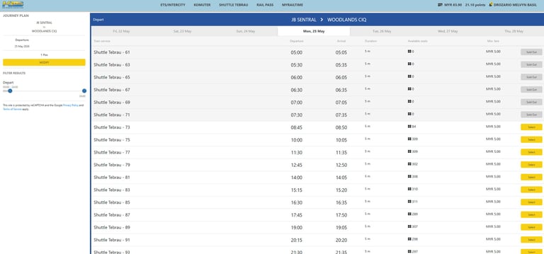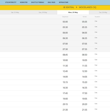 Another convenient option, by KTM Shuttle. A quick 5 min ride via the train station beside Woodlands Checkpoint to JB CIQ. Immigration clearance for both sides done at Woodlands. Click the image below for more information, or scroll down for pricing and direct link to booking.